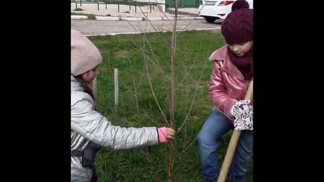 Ученики 3-а класса посадили на школьном дворе в честь Героя Советского Союза Г.А.Абызова березу.