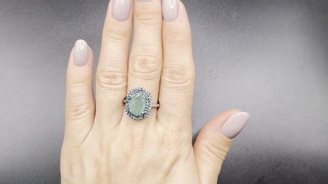 ИЗУ057 Кольцо с изумрудом и голубыми сапфирами