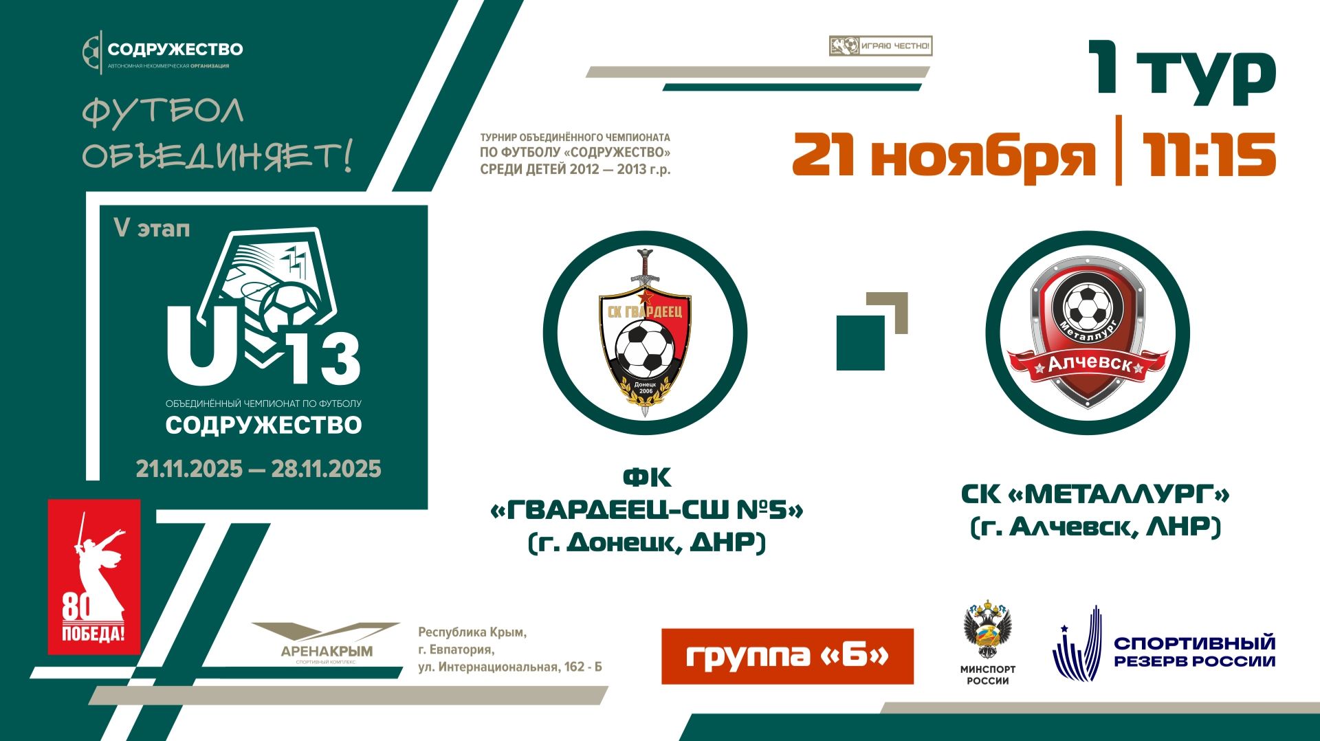 1 ТУР [Группа Б] | ФК «Гвардеец-СШ №5» (г. Донецк) - СК "Металлург" (г. Алчевск) | 21.11.25