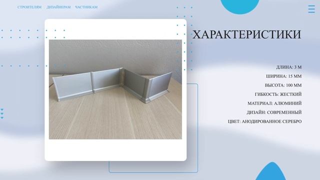 Официальный магазин завода Производителя: https://alyuminievyjplintus.ru/ Купить Плинтус алюминиевый Л-образный АНОДИРОВАННОЕ СЕРЕБРО: https://alyuminievyjplintus.ru/item/10945-plintus-alyuminievyjj-l-obraznyjj-anodirovannoe-serebro-matovyjj-100kh15kh3000-mm Л-образный плинтус из алюминия высотой 60 мм. находит отличное применение при отделке помещений в стиле Premium, Hi-Tech или Минимализм. Так же довольно часто используется в интерьерах автосалонов и бизнес-центров. Плинтус имеет привлекательный дизайн, отличное качество, а в совокупности более привлекательной ценой, по сравнению и зарубежными аналогами. Возможна окраска в различные цвета по RAL. Для плинтусов есть комплектующие из ПВХ и из алюминия. В ролике вы увидите: ▶ Плинтус алюминиевый Л-образный АНОДИРОВАННОЕ СЕРЕБРО ▶ Стоимость, скидки и характеристики Тайминг: 00:00 Вступление 00:06 Описание и цена 00:14 Характеристики 00:20 Дополнительная информация (Доставка, Оплата, Скидки, Обмен, Возврат) 00:30 Магазин завода производителя Характеристики: ДЛИНА: 3 М ШИРИНА: 15 ММ ВЫСОТА: 100 ММ ГИБКОСТЬ: ЖЕСТКИЙ МАТЕРИАЛ: АЛЮМИНИЙ ДИЗАЙН: СОВРЕМЕННЫЙ ЦВЕТ: АНОДИРОВАННОЕ СЕРЕБРО Интересные ролики про плинтус: Плинтус алюминиевый 80х10 черный матовый https://youtu.be/oHVCEHSvDDU?si=-nQi4ewE5WfC9qJC Плинтус алюминиевый 60х11 светлая бронза https://youtu.be/ihlQM3PwBrM?si=VpfARSQvz4sh0oqf Плинтус алюминиевый 60х11 светлая бронза https://youtu.be/rhH4Uc98YVw?si=99Vh79yKL0WjI38Z Подписывайтесь на наш канал, следите за новыми полезными роликами, пишите комментарии и приятного просмотра! Сайт: https://alyuminievyjplintus.ru/ #плинтус #плинтусполоса #алюминиевыйплинтус #напольныйплинтус #плинтуслобразный