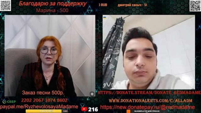 Стримы проводим на новом канале по ссылке https://www.youtube.com/channel/UCpd7cP8a8TbXkhRfZB9-V1g также стримы можно смотреть на следующих платформах https://vkplay.live/rmadame https://vk.com/video/ @RMadame https://boosty.to/ryzhevolosaya-madame Свежие нарезки можно смотреть https://dzen.ru/redheadmadamchat?share_to=link https://www.youtube.com/@RMadam1 https://www.youtube.com/@RMadame Пообщаться в голосовом чате, обсудить новости и узнать первым о предстоящем стриме можно подписавшись на телеграмм канал https://t.me/redheadMadamchat Все беседы ведутся с развлекательной целью и не направлены на разжигание какой либо вражды. Поддержать меня карта Сбер 2202 2067 3874 8602, или голосовым донатом по ссылке https://www.donationalerts.com/r/alladm , https://donate.stream/donate_redmadame , https://donatepay.ru/don/redmadame Для вопросов и предложений @RedHeadMadamBot