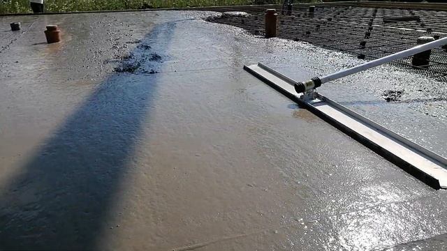 Процесс заливки плиты пола первого этажа.