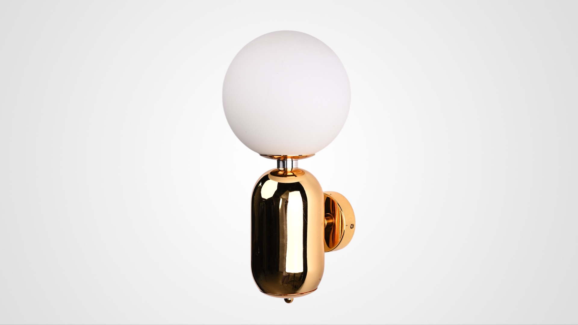 Бра Parachilna Aballs Gold D20 — элегантный современный акцент для интерьера. Белый стеклянный плафон и золотая арматура создают мягкое, стильное освещение и подчёркивают премиальный характер светильника. Размеры: 25×25×25 см, диаметр плафона — 20 см Код товара 193660-22