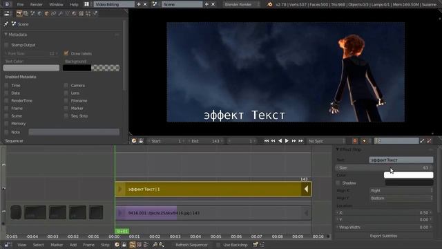 видеомонтаж в программе Blender использование надписей на монтажном столе