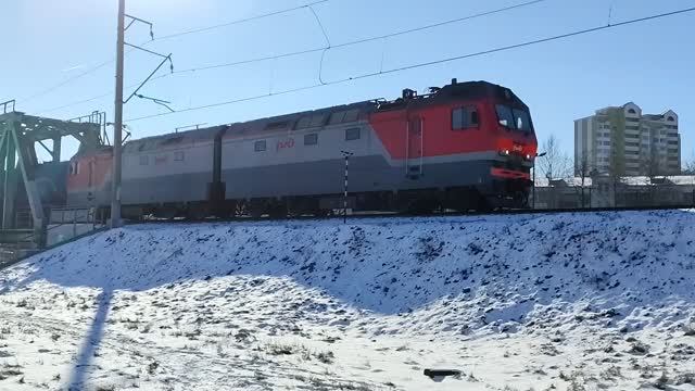 Электровоз 2ЭС6-1341 "Синара" (ТЧЭ-5) с наливным грузовым поездом.