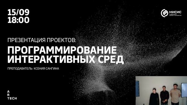 Презентация работ студентов магистратуры «Технологическое искусство» ArtTECH Университета МИСИС после интенсива «Программирование интерактивных сред» от преподавателя Ксении Сангины
