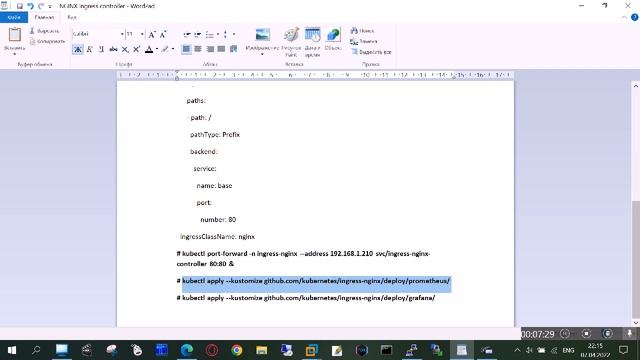 # helm upgrade --install ingress-nginx ingress-nginx --repo https://kubernetes.github.io/ingress-nginx --namespace ingress-nginx --create-namespace # helm upgrade ingress-nginx ingress-nginx --repo https://kubernetes.github.io/ingress-nginx --namespace ingress-nginx --set controller.metrics.enabled=true --set-string controller.podAnnotations."prometheus\.io/scrape"="true" --set-string controller.podAnnotations."prometheus\.io/port"="10254" # kubectl apply -f ingress-conf.yaml apiVersion: networking.k8s.io/v1 kind: Ingress metadata: name: ingress-myservice spec: rules: - host: base.local.net http: paths: - path: / pathType: Prefix backend: service: name: base port: number: 80 ingressClassName: nginx # kubectl port-forward -n ingress-nginx --address 192.168.1.210 svc/ingress-nginx-controller 80:80 & # kubectl apply --kustomize github.com/kubernetes/ingress-nginx/deploy/prometheus/ # kubectl apply --kustomize github.com/kubernetes/ingress-nginx/deploy/grafana/