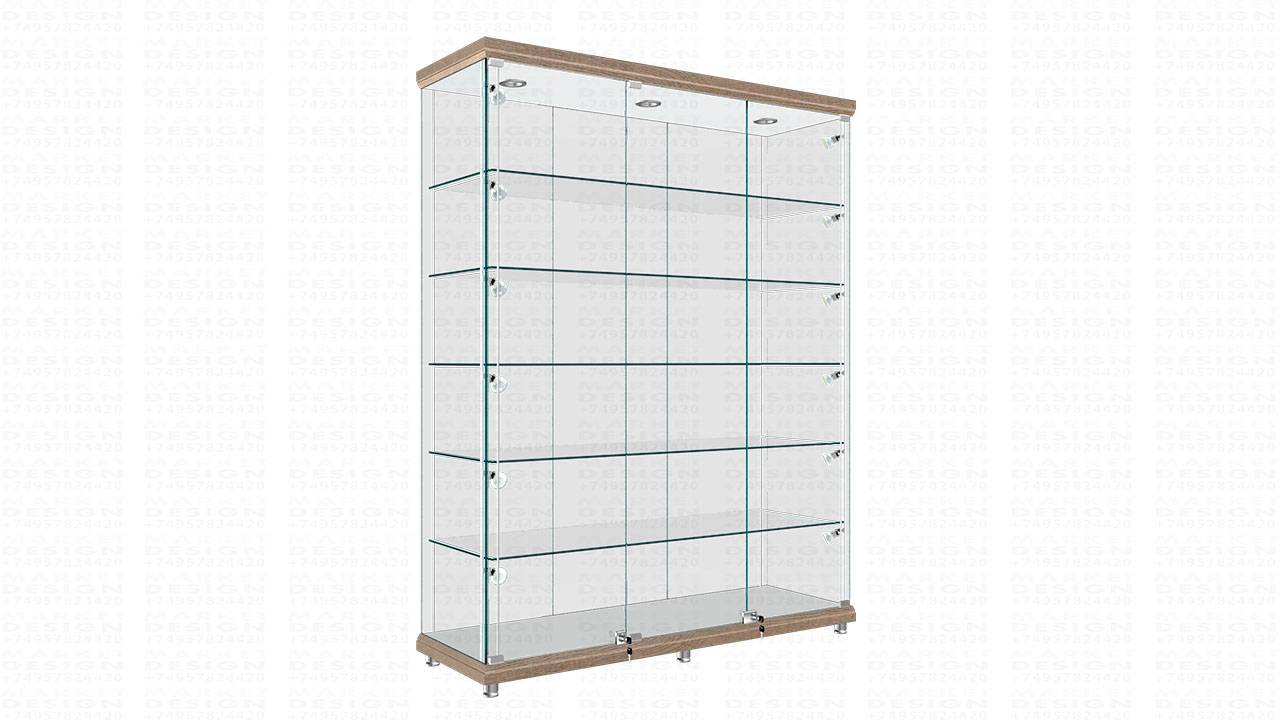 Большая витрина с треками подсветки с возможностью регулировки полок по высоте, все стеклянные части витрины с полированным краем стекла (евро кромка). Нижняя и верхняя часть сделана из мдф в сочетанием с лдсп толщиной 16мм. В витрине предусмотрены точечная подсветка каждой полки. в стандартную комплектацию витрины входит 3шт. светильник верхней подсветки с галогенной лампочкой 220 вольт 1шт. замок на две стеклянные двери 1шт. замок на одну стеклянную дверь 30 шт.полкодержатель хром 4шт. стойка опора для крепления стоек 5шт. полка стеклянная 6шт. ножка регулировочная https://www.market-design.ru/vitriny/vitriny-noje/
