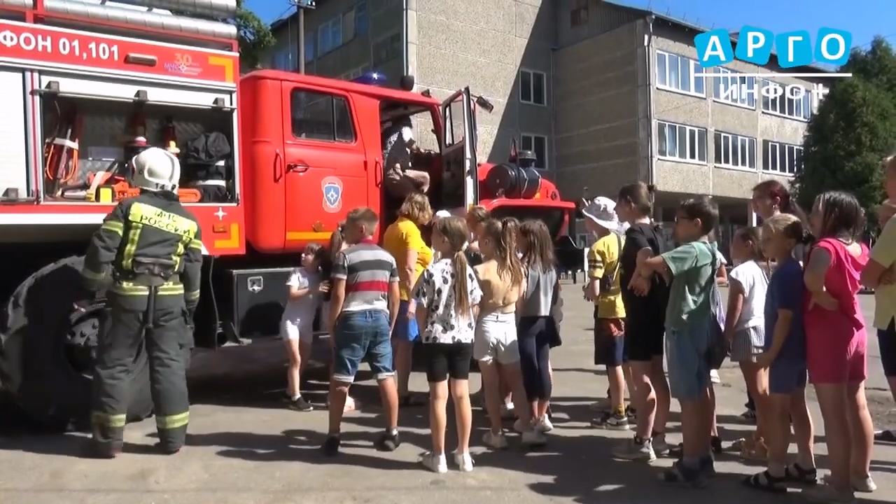Телеканал «Арго-Инфо» - Пожарные 14 ПСЧ посетили летние детские оздоровительные лагеря