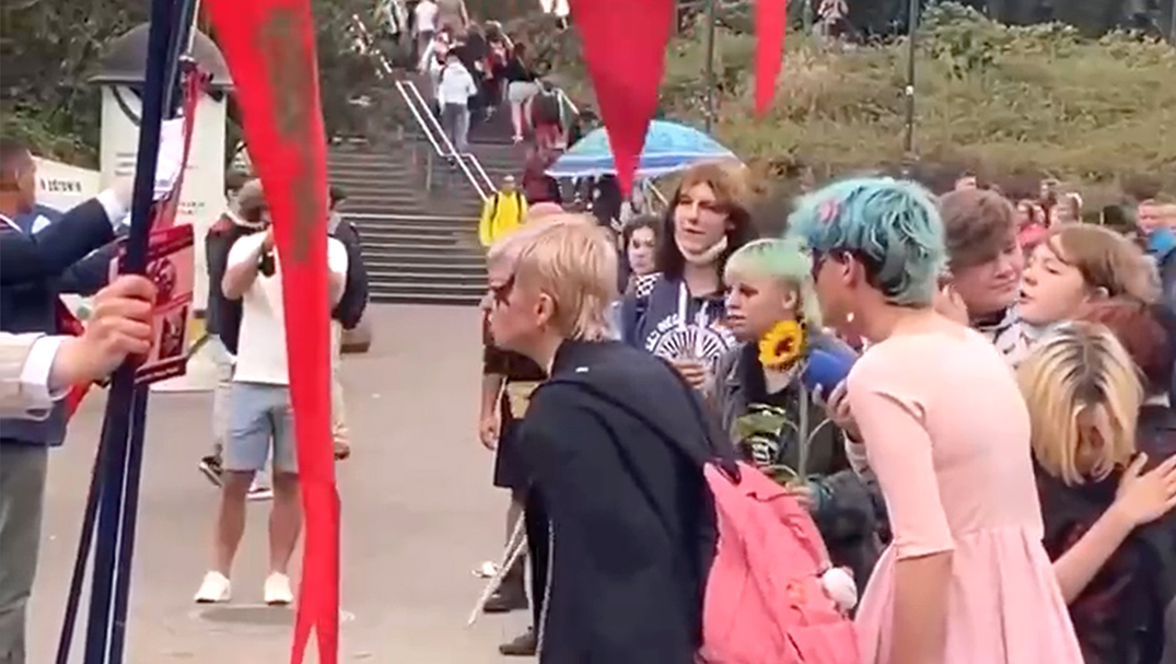 В Варшаве представительницы ЛГБТК-сообщества решили помешать проведению митинга консерваторов. Девушки нетрадиционных взглядов не стали утруждать себя, и вместо диалога на польском языке перешли на собачий лай.
