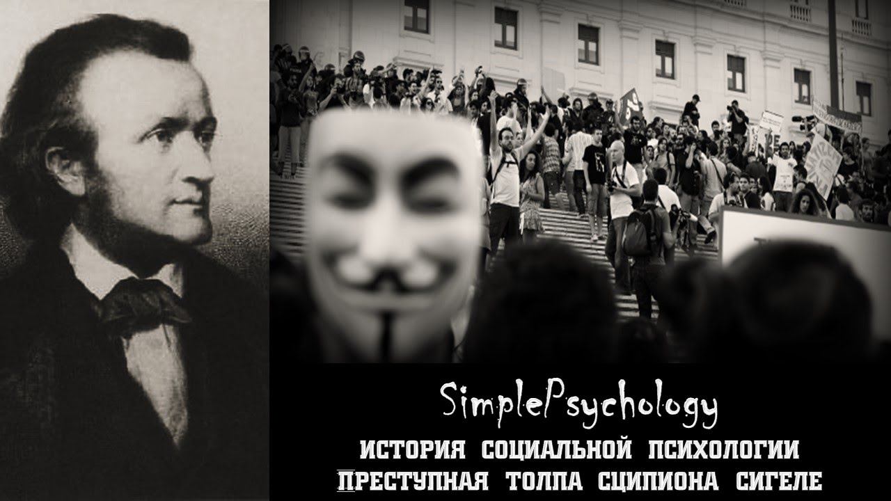 ☛ https://boosty.to/simplepsychology - новые видео и дистанционное обучение Кешбек сервис, которым я пользуюсь - http://got.by/45cbmo === - С. Сигеле (1868-1913) — итальянский психосоциолог, криминалист, автор работ: «Преступная толпа» (1891), «Психология сект» (1895). Занимался исследованием источников преступлений, которые возникают в условиях большого скопления людей. Основной причиной противоправных действий в толпе он видел в «иррациональной динамике действий», которые проявляются в «массовых ситуациях». Микроб зла, — отмечал С. Сигеле, — очень легко распространяется в толпе, «тогда как микроб добра умирает почти всегда, не находя подходящих условий жизни» Его интересовала психология реализации власти, механизмы господства властного меньшинства над подвластным большинством. Под этим углом зрения Сигеле занимали не только элиты, но и более многочисленные человеческие общности – большие и малые социальные группы. ====================================================== ☛ http://vk.com/primalinstinct - наша группа (вся информация по сотрудничеству и важные объявления здесь). ☛ http://www.youtube.com/SimplePsychology - канал по психологии ☛ http://www.youtube.com/SimplicityOfScience - канал по менеджменту и другим наукам. ================================= Для тех кто хочет поддержать проект: ☛ 41001213871702 - Яндекс кошелек. ☛ R502021272863 - Вебмани. ☛ Z615442054561 - Вебмани. ☛ за другими реквизитами пишите в личку, либо смотрите в группе. Деньги будут потрачены на покупку оборудования и организацию различных мероприятий (текущие цели и список поддержавших указаны в группе). ============================= По сотрудничеству: ☛ заходим в группу, под описанием есть спойлер с меню группы жмакаем туда, выбираем нужный вам пункт и изучаем его, только потом пишем мне. ☛ старайтесь писать именно в вк (почту не всегда смотрю). ==================================================== ☛ Частичный список литературы находится в группе. ======= Спасибо за просмотр! ======= ==== Записаться на курс по гипнозу и гипноанализу - https://classicalhypnosis.ru/obuchenie