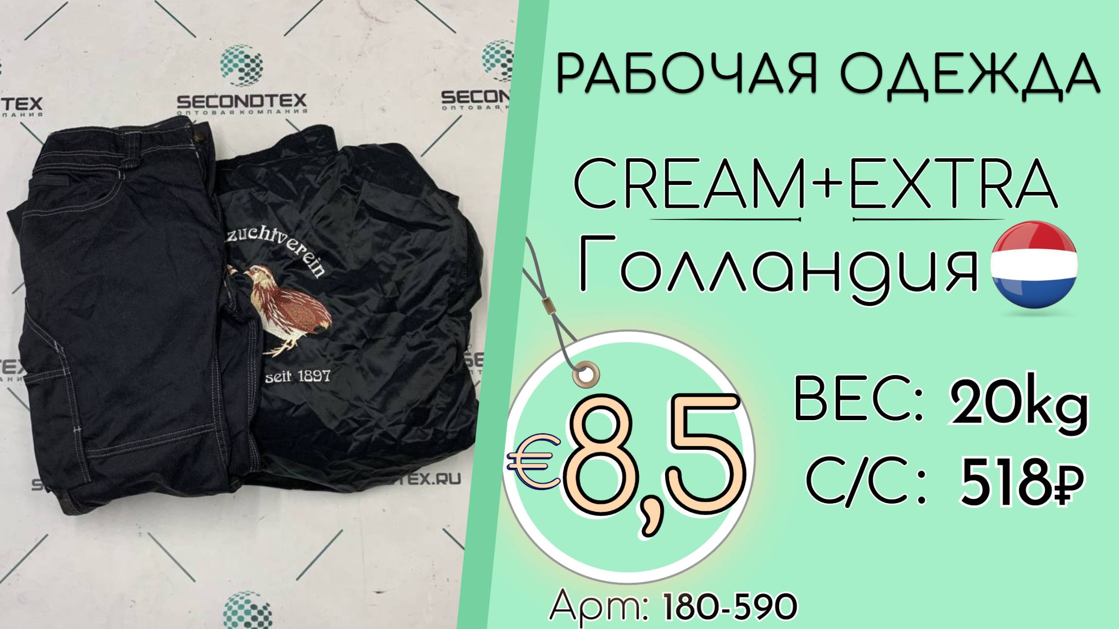 Страна: Голландия Вес мешка: 25 кг Цена за кг: Евро 8,5 / Рубли 808 Цена за мешок: 20 188 руб. Себестоимость одной вещи: 518 руб. Кол-во штук: 39 шт. ____ 💰 Курс на дату съемки (27.08.2025): €1 = 95 Руб. (при наличных и безналичных платежах) 💳 €1 = 95 Руб. (при безналичной форме оплаты на р/с) Связаться с нами: +7(916)779-79-79 (WhatsApp, Telegram) Наш сайт: https://secondtex.ru Instagram: https://instagram.com/secondtex.opt Мы ВКонтакте: https://vk.com/secondtex