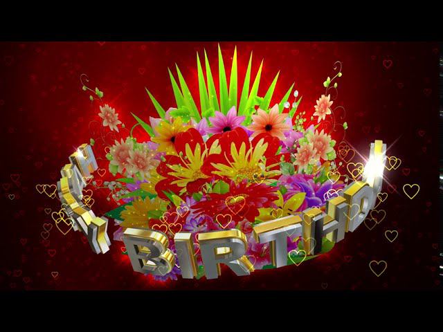 Шикарный футаж: ЦВЕТОЧНАЯ КОМПОЗИЦИЯ HAPPY BIRTHDAY на бордовом фоне с эффектом контура сердечек