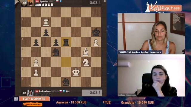 Играет WGM Карина Амбарцумова. Комментирует WFM Любовь Маркелова. Титульный вторник на chess.com 11 туров 3+1 Поддержать канал: https://www.donationalerts.com/r/karinachess1 Подписаться на мой канал: https://www.youtube.com/channel/UChor8u_hhgrjX2lt0QLzZHA?sub_confirmation=1 Стать спонсором канала: https://www.youtube.com/channel/UChor8u_hhgrjX2lt0QLzZHA/join Обучающий курс "Пешечные структуры" http://bit.do/pawns-structures Рестрим: https://www.twitch.tv/karinachess1 Рада приветствовать Вас на канале женского международного гроссмейстера, международного мастера Карины Амбарцумовой! Я - профессиональная шахматистка и тренер. Здесь вы сможете найти обучающие видеоуроки по шахматам, комментарии турниров, стримы моей игры в блиц шахматы. Подписывайтесь на мои странички в соц.сетях: ВКонтакте: https://vk.com/karinachessclub Twitch: https://www.twitch.tv/karinachess1 Почта для связи: karinachess@mail.ru Поддержать канал: https://www.donationalerts.com/r/karinachess1 Мой сайт: http://chesscoach.ru/ #шахматы #КаринаАмбарцумова #стримшахмат #шахматыблиц