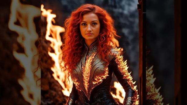 Девушка огненный дракон горящие доспехи третий вариант