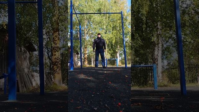 Подтягиваюсь на турниках.