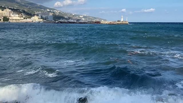 Два дня уже продолжается шторм и тягун в Ялте.