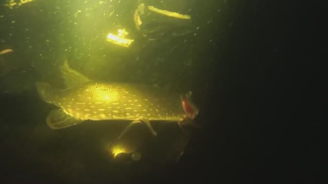 Подводная охота на щуку. Попался в сеть.