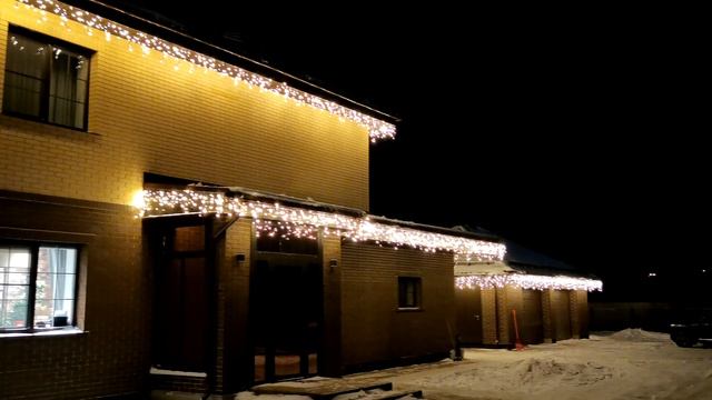 Новогодний световой декор в Можайске: бахрома на доме и гараже, подсветка беседки