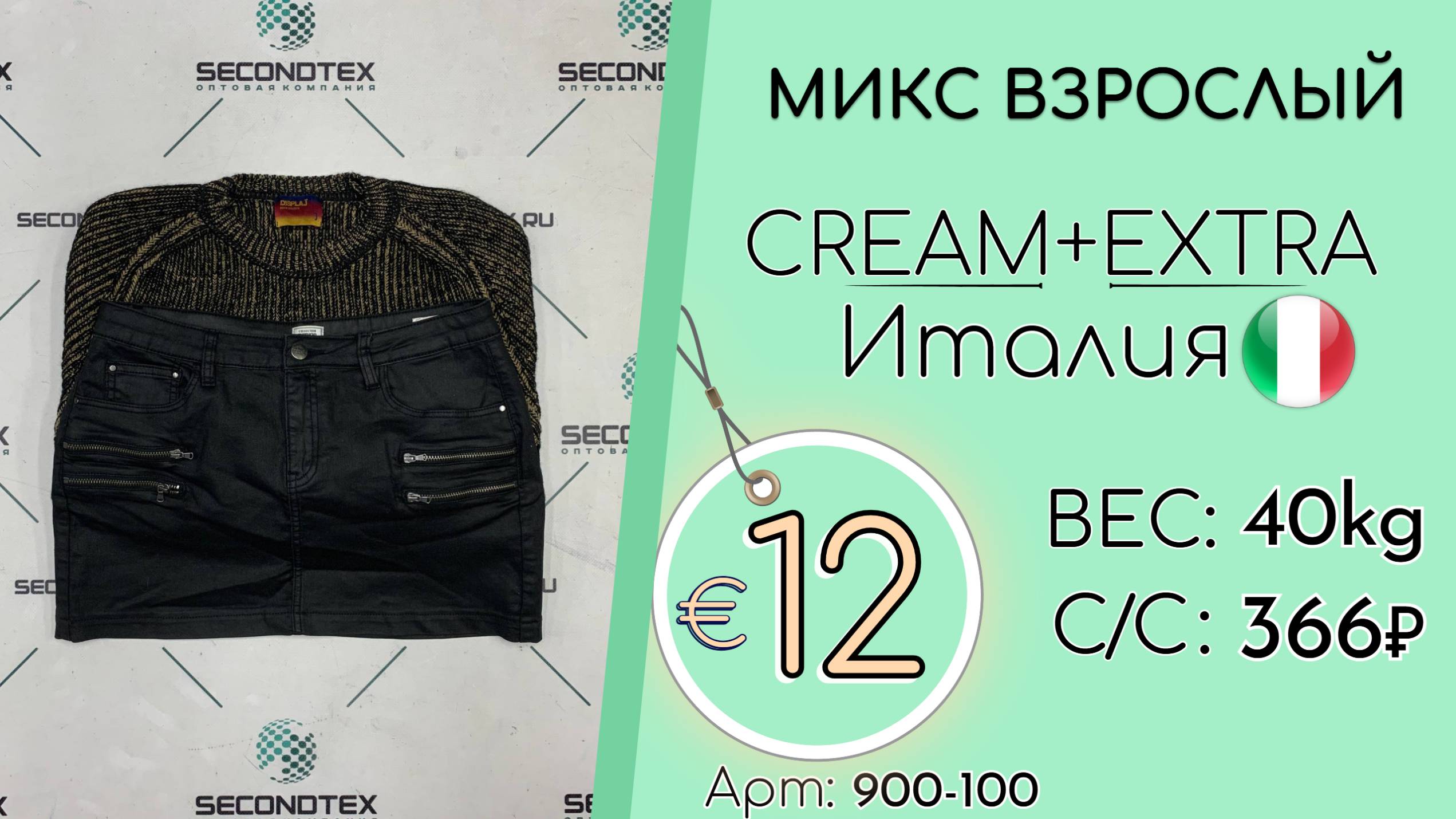 Страна: Италия Вес мешка: 40 кг Цена за кг: Евро 12 / Рубли 1 188 Цена за мешок: 47 520 руб. Себестоимость одной вещи: 366 руб. Кол-во штук: 130 шт. ____ 💰 Курс на дату съемки (22.09.2025): €1 = 99 Руб. (при наличных и безналичных платежах) 💳 €1 = 99 Руб. (при безналичной форме оплаты на р/с) Связаться с нами: +7(916)779-79-79 (WhatsApp, Telegram) Наш сайт: https://secondtex.ru Instagram: https://instagram.com/secondtex.opt Мы ВКонтакте: https://vk.com/secondtex