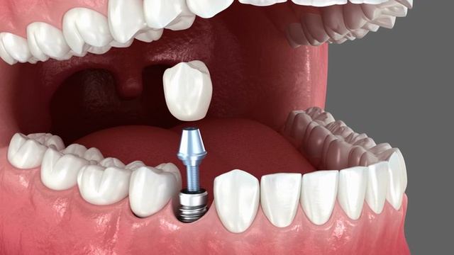 Установка зубных коронок на 3 импланта. 3D-анимация стоматологического процесса