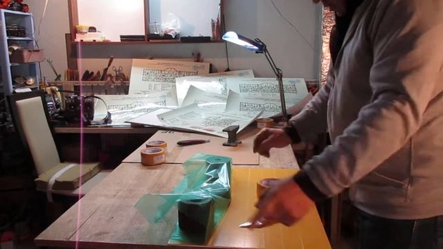 Наклейка плаката на твёрдую основу посредством обоюдного скотчаНаклейка плаката на твёрдую основу по