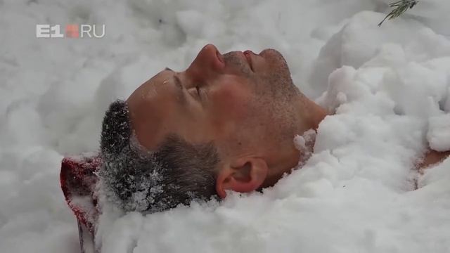 e1 Мужика в одних трусах закопали в сугробе