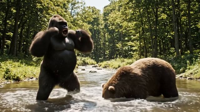 Медведь против гориллы смотреть видео Битва гориллы и медведя Никто не хотел уступать Кто сильнее лес, река, лето