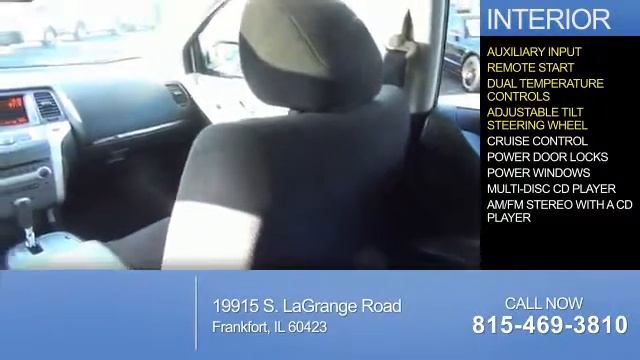 Dealer Website: Phone: Year: 2013 Make: Nissan Model: Murano Trim: S Engine: 3.5 liter 6 Cylindercylinder AWD Transmission: CVT Color: Mileage: 33888 Address: 19915 S. LaGrange Road Frankfort, IL 60423 VIN:JN8AZ1MW8DW308720