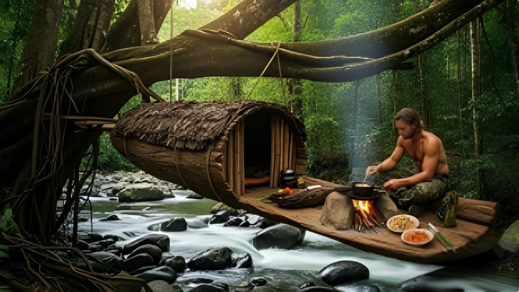 Строим дом у реки, дом на дереве и дом под землей. Строим дома и выживаем в тропическом лесу.