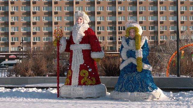 Русский стиль, герои народных сказок и яркие гирлянды: как украсили главную площадь области