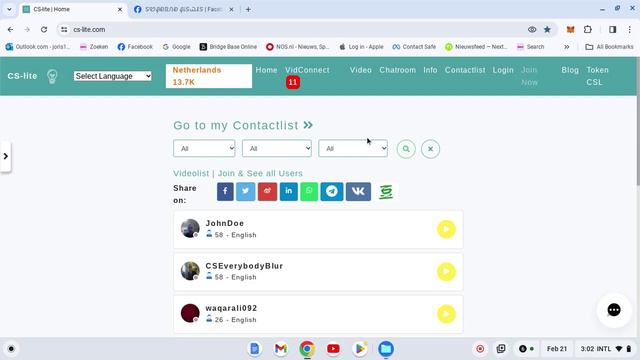 facerecognizing software wont work out here https://cs-lite.com/ Here everybody worldwide can share his true opinion with the world. There is no email ID registering here and no cellnumber required. Location info will not be asked. You can't upload a picture from gallery but only selfie registering but thats blurred. Facerecognizing software will not be able to detect you. Its also not an app but a website so you dont need to download from an appstore. Vidconnect is free and public no need to register and free some less blurred but still undetectable My website gets a lot of visitors from Iran - Afghanistan - Russia, and Cuba. ================================================================================Free tokens CS-lite, try it out Welcome to the CSL (CS-lite) token world which is connected with a website for combating loneliness BNB - fast BEP20 It’s a new token and from start on you can get free ones. Send address and i send you 200 free so you know i am not bluffing BSC adress Be at the start of it, thatś always best Per action you get 300 tokens shared to you by cryptosender https://cryptosender.io/en/ 1. Share website to one of your socials and get 300 CS-lite tokens for it https://cs-lite.com/ Share buttons there Pancakeswap liquidity at page token locked a year 2. Make a real profile at website showing yourself in comicstyle and get 300 tokens https://cs-lite.com/register Send username 3. Subscribe to my Youtubechannel 300 https://www.youtube.com/channel/UCwXU2wbIA5ja8-e1zbBHDVQ Send your YT channel 4. Share a video to your Youtube channel also 300 https://www.youtube.com/watch?v=YFm5KhongT8 5. Share this post to a Telegram contact 300 Easy 1500 tokens to get Send account code to send tokens to, to Or to my Telegram account +200 free info@cs-lite.com WHY NOT? WHO KNOWS WHAT IT WILL BRING YOU? I am working the website connected and it gets a lot of visitors everywhere, india, pakistan, venesuela, argentina, usa, palestine, congo, just everywhere joining the safe contacting. Just a couple a minutes work and then send your wallet address and who knows how much its worth in a few weeks? Joris van Huijstee, Netherlands