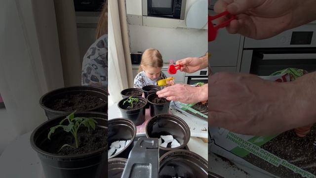 Мы посадили месяц назад семена помидор и вот они взошли, окрепли и настала пора их пересадить. Сами никогда раньше этого не делали, поэтому нам помогает бабушка Аглаи, по видео связи
