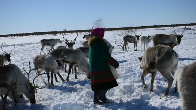 Мы приехали смотреть как Наталья угощает оленей их любимым лакомством. .