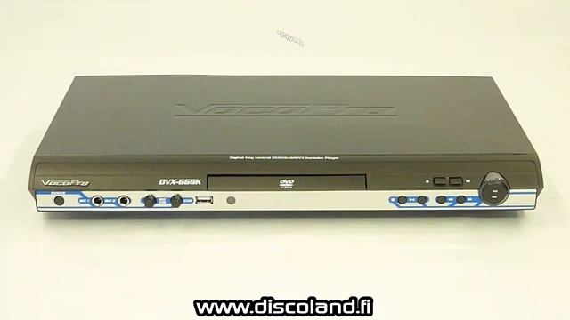 VocoPro:n Uusin Multi-Formatti USB, DVD, CD, CD+G, Mp3, ja DivX Karaoke-soitin. Soitin toistaa formaatit DVD, CD, CD+G, Mp3, ja DivX USB 2.0 liittimen kautta toistaa kaikki yleisimmät digitaaliset formaatit! - ±16 askeleen sävelkorkeudensäätö (transponointi) - Kaksi mikrofoni sisäänmenoa erillisillä voimakkuuden säädöillä - Säädettävä digitaalinen kaiku mikrofoneille - Optiset sekä koaksiaaliset lähdöt audiolle sekä 5.1 surround sound - Kaikki toiminnot ohjattavissa kaukosäätimellä - PAL ja NTSC yhteensopiva