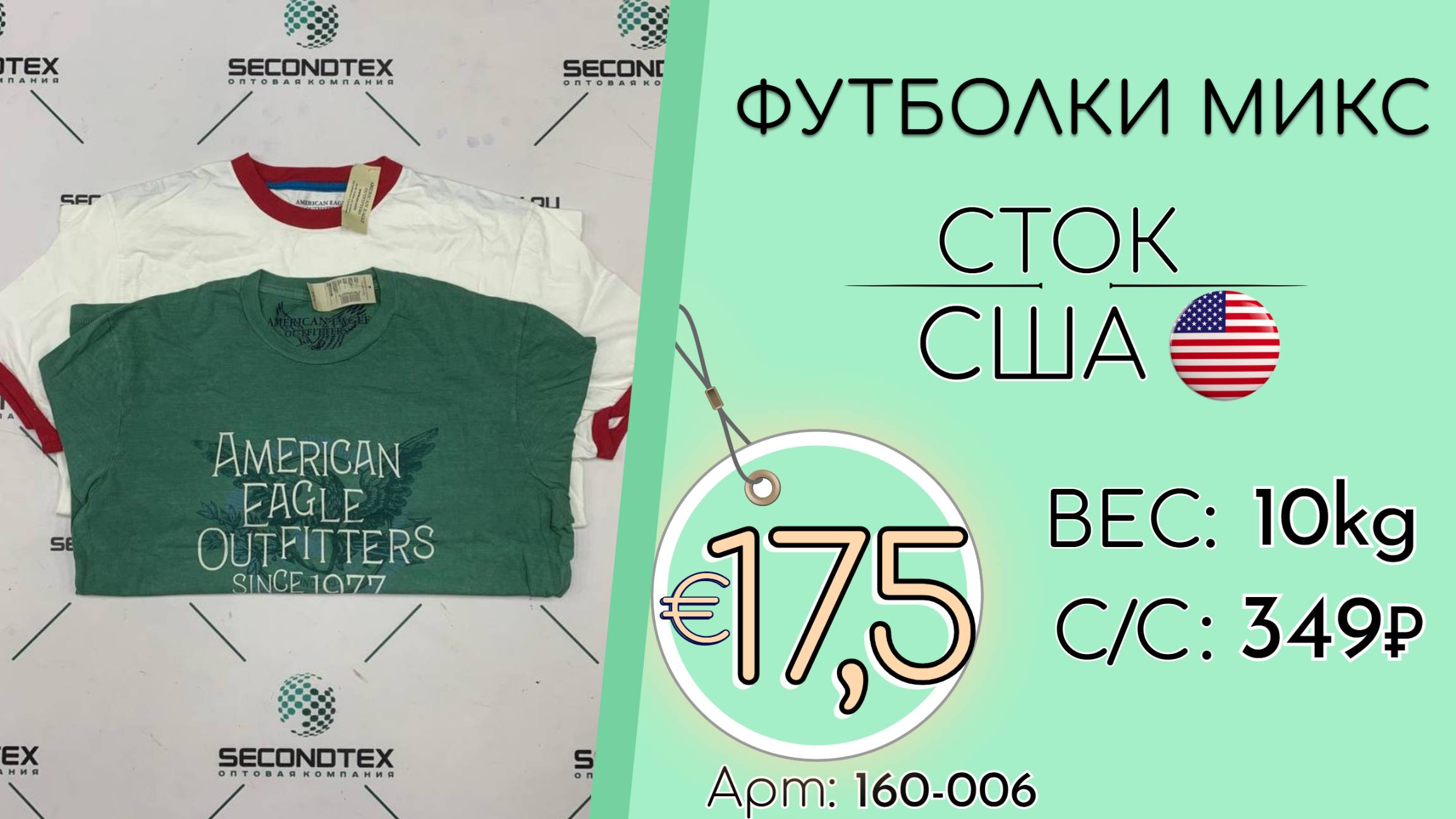 Страна: США Вес мешка: 10 кг Цена за кг: Евро 17,5 / Рубли 1 680 Цена за мешок: 16 800 руб. Себестоимость одной вещи: 349 руб. Кол-во штук: 49 шт. ____ 💰 Курс на дату съемки (09.05.2025): €1 = 96 Руб. (при наличных и безналичных платежах) 💳 €1 = 96 Руб. (при безналичной форме оплаты на р/с) Связаться с нами: +7(916)779-79-79 (WhatsApp, Telegram) Наш сайт: https://secondtex.ru Instagram: https://instagram.com/secondtex.opt Мы ВКонтакте: https://vk.com/secondtex