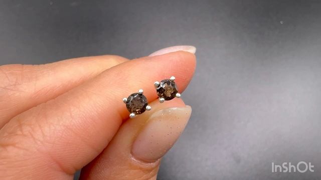 Серьги пусеты с раухтопазом Ювелирная огранка Диаметр камня 3 мм Застежка бабочка