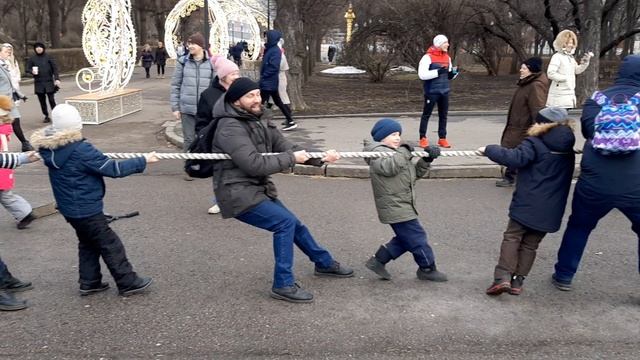 01.03.2020. Москва. Парк Горького. Масленица. Перетягивание каната.