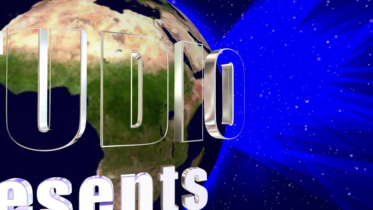 Заставка для начала фильма с 3D титрами^ STUDIO PRESENTS на фоне Планеты Земля и Вселенной