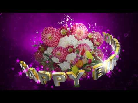 Шикарный футаж: БУКЕТ ЦВЕТОВ HAPPY BIRTHDAY на маджента фоне с эффектом звёзд