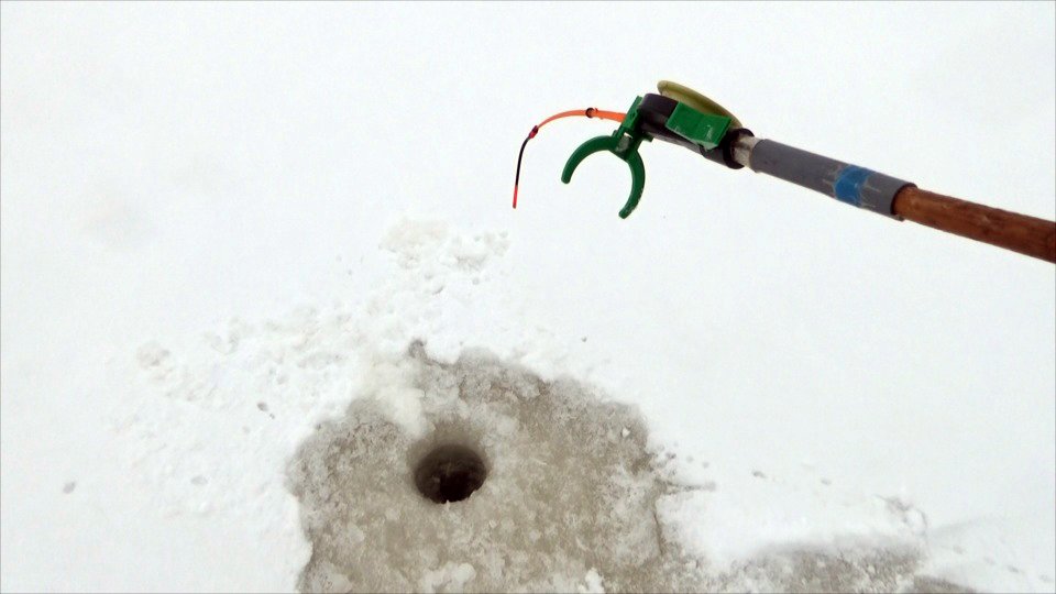 Зимняя рыбалка на необычные удлиннённые удочки по крупной плотве