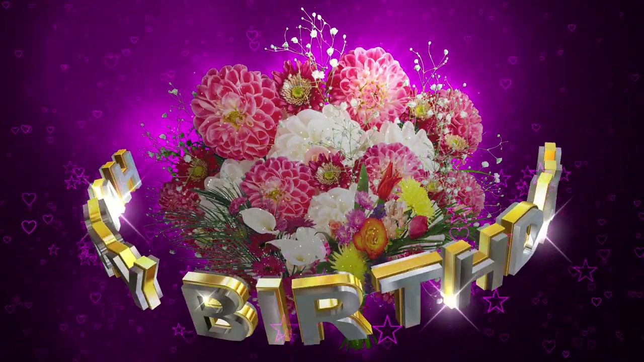 Шикарный футаж: БУКЕТ ЦВЕТОВ HAPPY BIRTHDAY на маджента фоне с эффектом контура звёзд