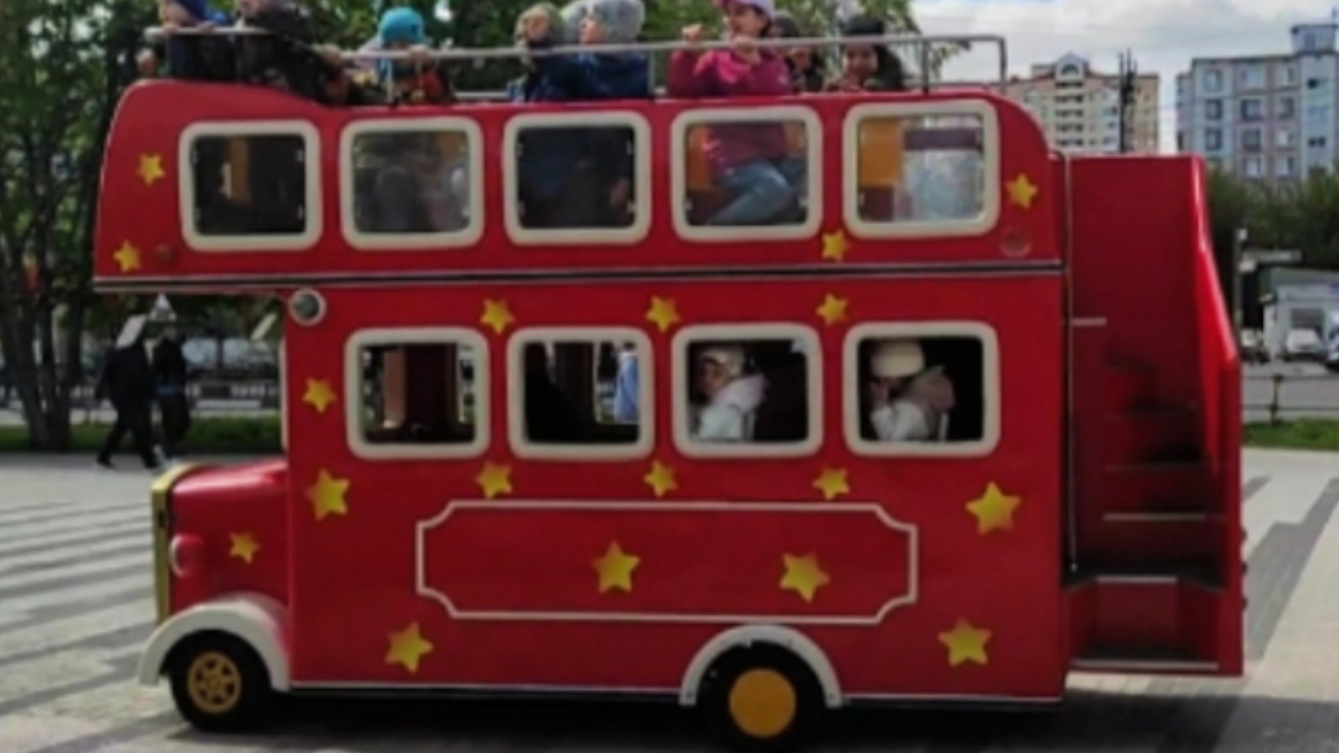Полина играет на новой Детской Площадке катается на автобусе