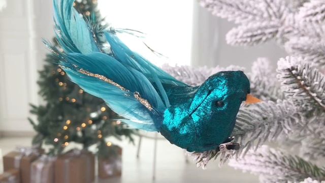 Ёлочная игрушка ПТИЧКА 'НОЧНОЙ САПФИР' на клипсе, перо, 14 см, MC40530