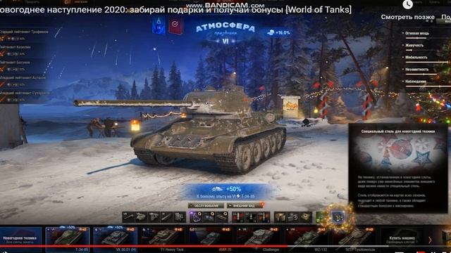 С 13 декабря по 14 января в World of Tanks пройдёт «Новогоднее наступление 2020». Оно будет масштабным и ярким. В этом гайде мы расскажем, как получить новогодние игрушки. Зачем украшать новогодний ангар. Как повысить уровень атмосферы праздника. Какие награды можно получить за сбор новогодних коллекций. И наконец, где взять заряды и как использовать антиповторитель в новом годном коллайдере. Зайдите в игру 13 декабря и найдите там первый приятный сюрприз от меня и снегурочек: три малые коробки с украшениями; французский лёгкий премиум танк II уровня AMR 35 со слотом и 100%-м экипажем; один заряд — особый предмет для антиповторителя.