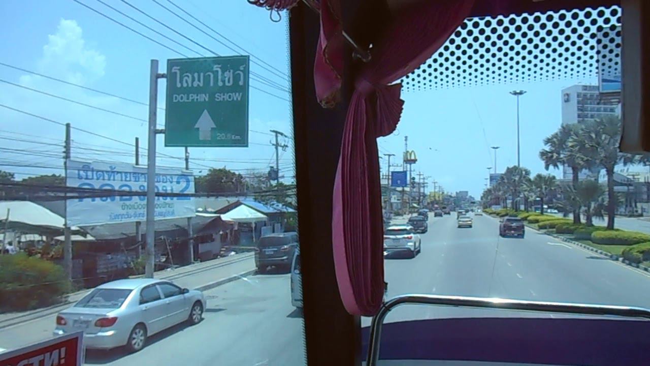 Улицы Паттайи из окна автобуса. Едем на экскурсию. Наш гид дает вводную по экскурсии и рассказывает о стране: пенсии, образование, бензин, автомобили, коммунальные услуги, гражданство, электропровода и т.д.