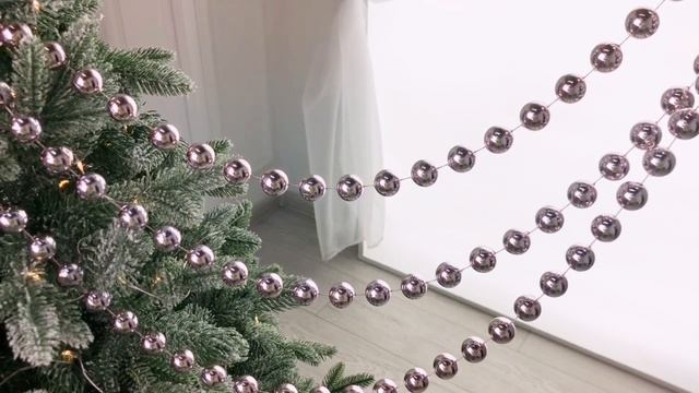 Ёлочные БУСЫ пластиковые ГИГАНТ, цвет: светло-сиреневый, 20 мм, 2.7 м, 001836