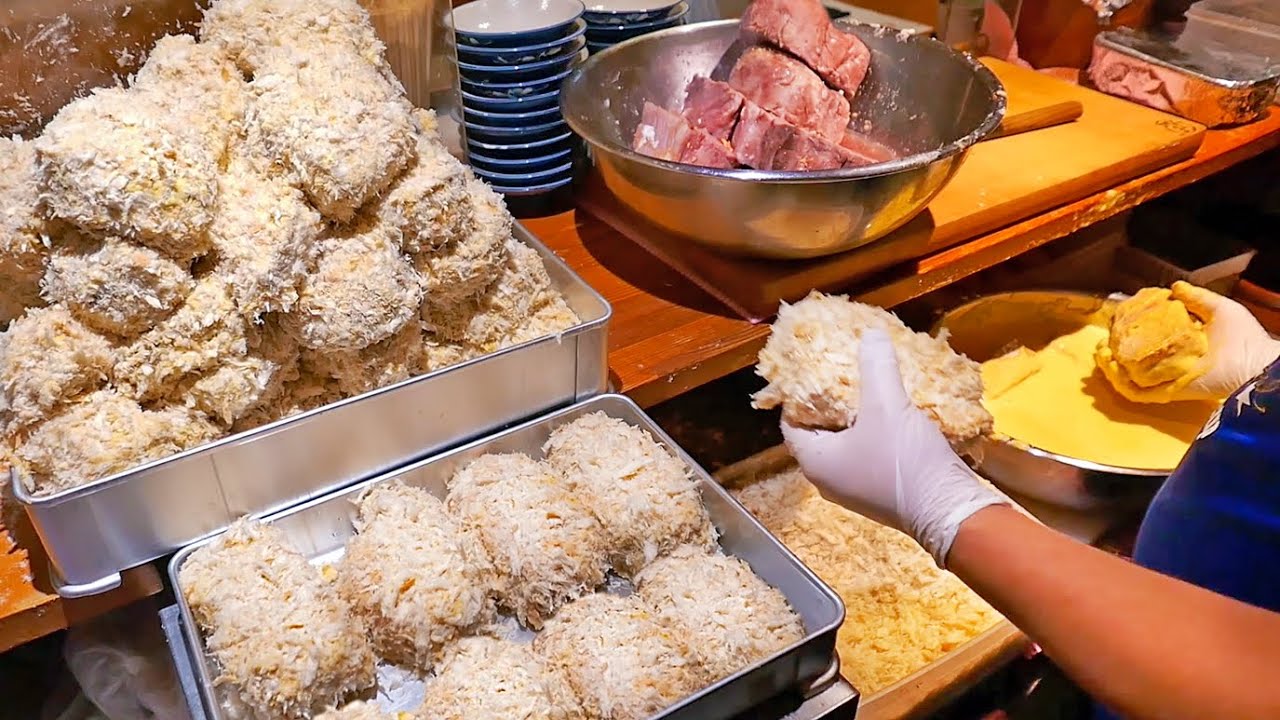 Японская еда - Гигантская Свиная Котлета "Борец Сумо". Осака, Япония