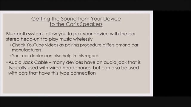 Remember when it was so "cool" to have a push-button AM radio in the car? This reviews how to utilize your existing Compact Disc collection, now that many new vehicles no longer have a CD player, by streaming from an online service, using Bluetooth, flash drives, smartphones, etc. Ray Baxter, Coordinator, Payson Meet-Up Club APCUG President & Treasurer APCUG is not a part of nor a representative of any manufacturer, product, reseller, dealer, consultant, or business and does not recommend or endorse any product, etc. Opinions provided by the information contained in this video or by the presenter(s) are individual opinions only and do not represent the organization, directors, advisors, or members.