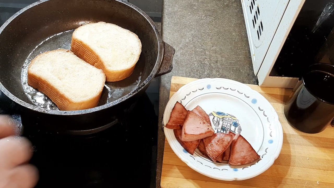 2 пятачка варёной колбасы, 2 куска белого хлеба (батона), растительное масло для жарки. Сначала жарим колбасу, а потом в колбасном масле обжариваем хлеб, наливаем чай, сластим . и завтрак готов. Приятного завтрака! Пишите коменты! Пока и всем удачи! Подпишись и лайкни!!!